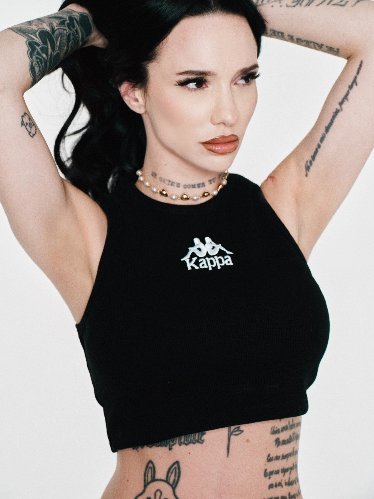 Top de punto acanalado de corte entallado, presenta un bordado central de la marca en contraste.